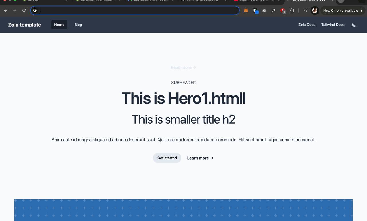 ✅ A working Zola template with TailwindCSS and component-based rendering.