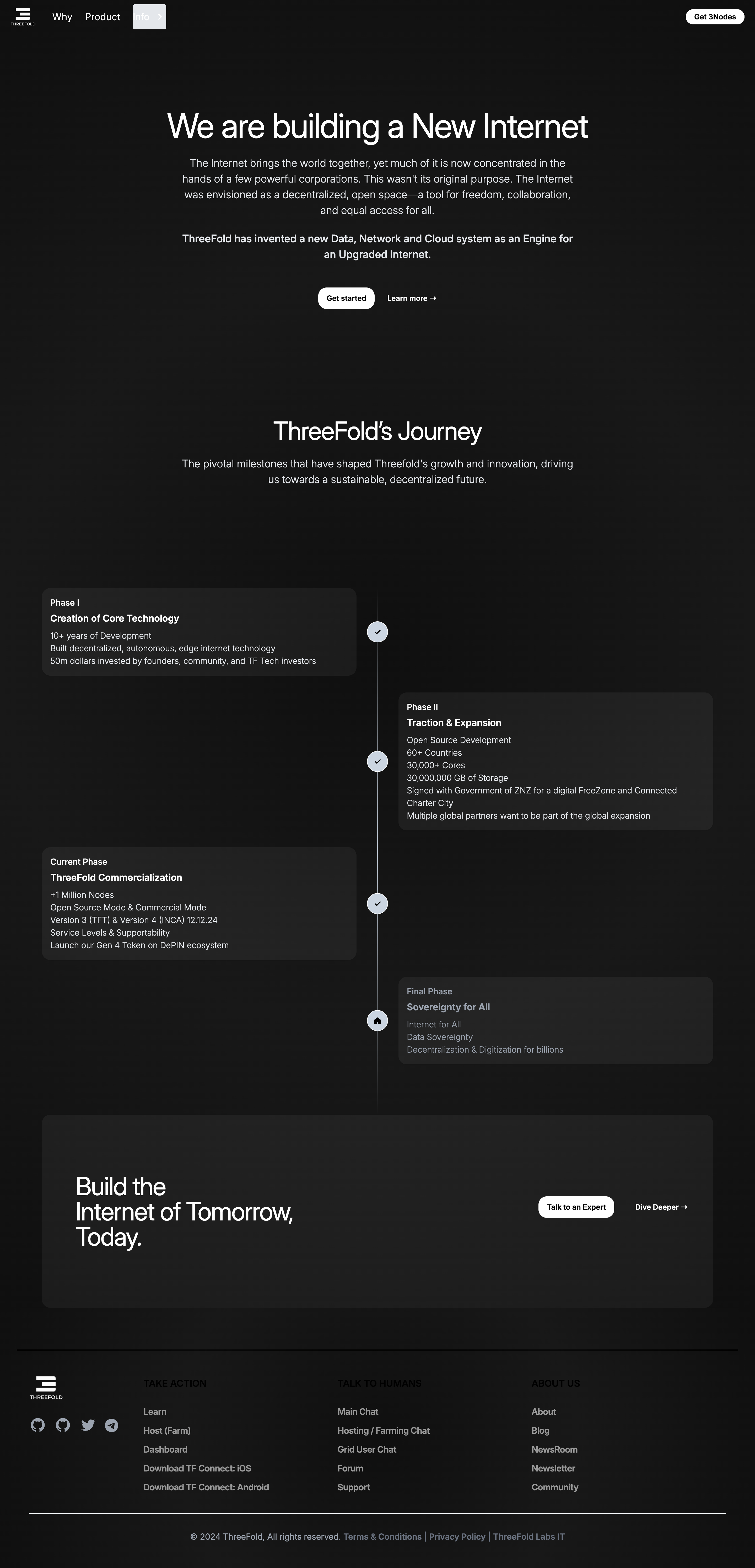 It looks GREAT! It'd be cool to have an "infinite-scrolling" experience with the footer at the end and lots of content/narrative/flowing story at the home page. (See this as POC: https://git.ourworld.tf/tfgrid/www_projectmycelium_io/src/branch/main/threefold_v3_onepager)