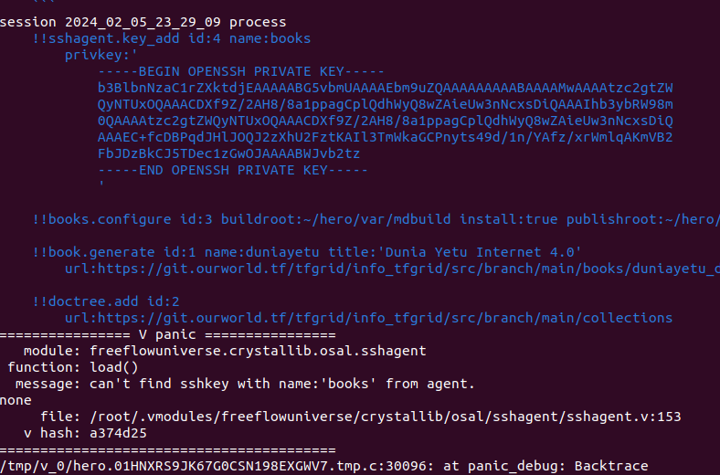 hero test: can't find sshkey with name:'books' from agent #5
