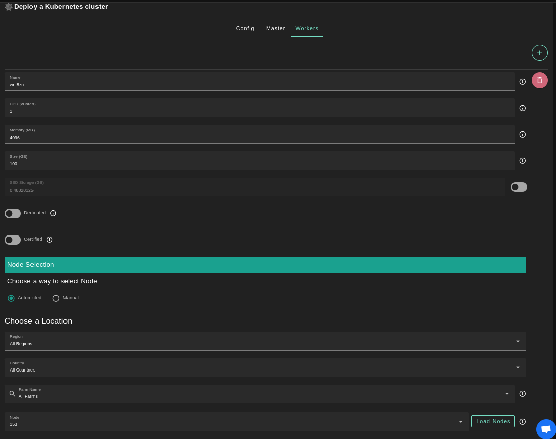 > Currently, we only support "single-master-multi-worker" k8s clusters. So you could always add more than one worker node by clicking on the **+** in the ***Worker*** tab.