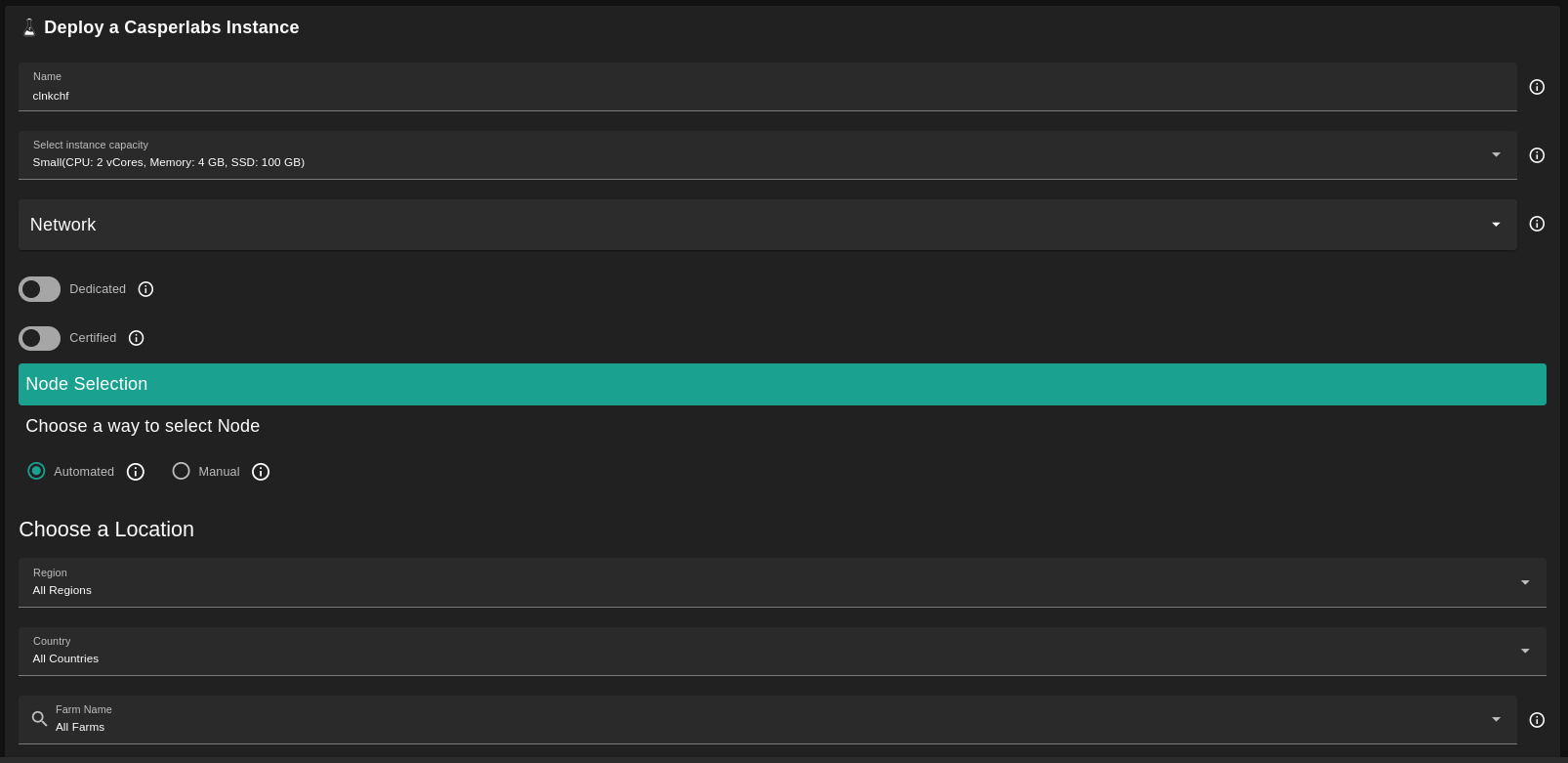 - Choose a gateway node to deploy your Casperlab instance on.