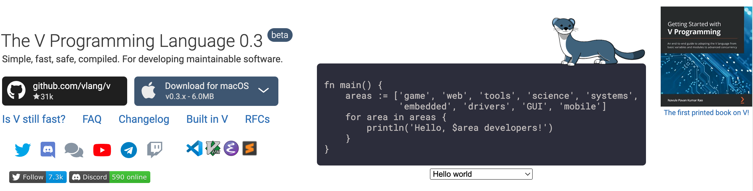 VLang is an exciting language sponsored by ThreeFold. VLang has 27000 github stars and we believe its a very good language to build executor functions with.