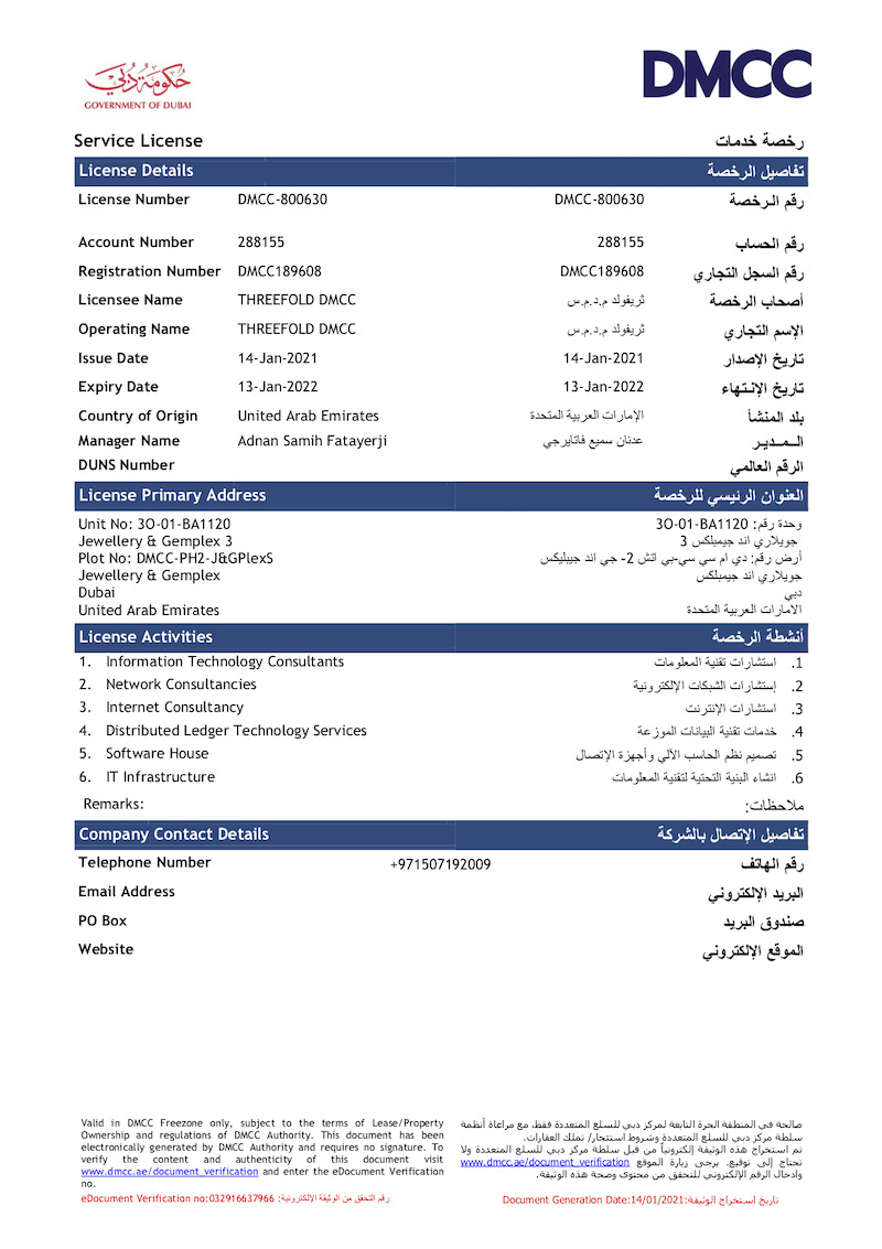 Please see below the ThreeFold DMCC license: